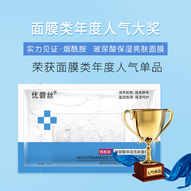 優碧絲爆款煙酰胺玻尿酸保濕亮膚面膜貼牌定制代加工