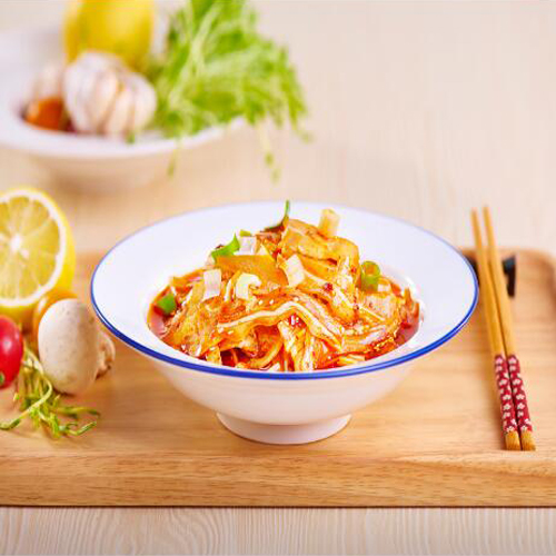 源于四川民間,當地又名玻璃耳片,屬于涼拌菜系的代表,以菜式紅亮.光澤、口感脆嫩爽淚、辣、鮮、香、酥,為主要味型,是別具風味的地道四川涼菜