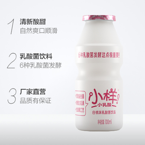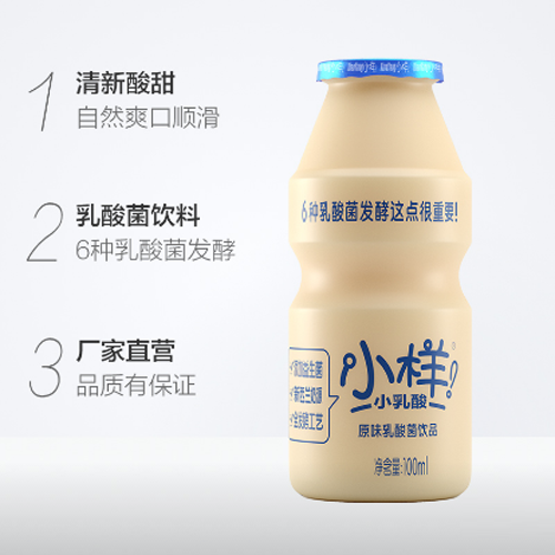 小樣乳酸菌優價裝是小樣小乳酸的升級版, 現推出原味和白桃兩種口味 此次升級裝產品采用單色包裝風格(原味藍和白桃粉),給人以簡潔明了、 清爽舒適的視覺感受。該產品在保證新西蘭進口奶源、全發酵工藝的如一品質上, 特別添加益生菌,功效價值更突出。