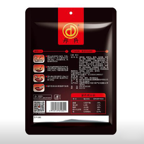 產品名稱:番茄風味調料(復合調味料產品規格: 220克保質期: 12個月貯存條件:干燥、通風、陰諒避光處產地:四川省成都市食用方法: 1.將1kg左右肉片(魚肉、牛肉、豬肉皆可) ,加入腌肉料包1袋(20g) ,和適量料酒、雞蛋清碼勻待用將100g新鮮番茄洗凈切片或切塊鍋內放入植物油60g,加熱到二成熱,下番 茄翻炒出香加入清水(高湯更佳) 1.2kg (以個人口味為宜)和調料包1袋燒開后先將肉片煮熟即可食用