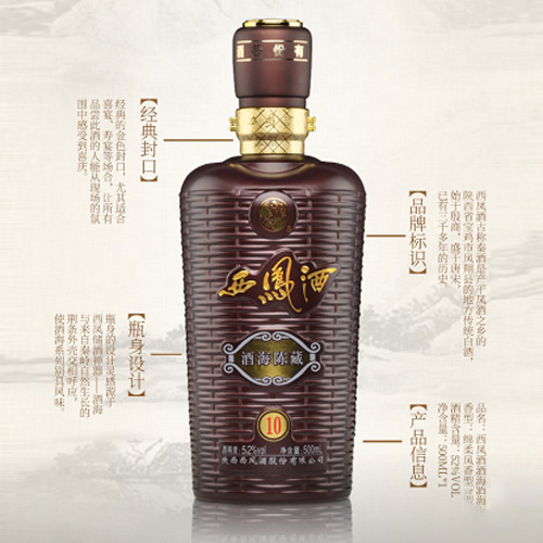 酒海陳藏西鳳酒,“酒藏于海,青出于藍(lán)’,三千年的古典工藝,鑄造會呼吸的陳藏鳳香。酒海陳藏西鳳酒以西鳳獨(dú)有的大酒海為設(shè)計(jì)原型,符號突出,設(shè)計(jì)古樸,獨(dú)具特色。嚴(yán)格遵守-年-個(gè)周期鳳香釀造工藝標(biāo)準(zhǔn)、會呼吸的大酒海儲酒工藝 ,經(jīng)過數(shù)以萬計(jì)的大眾口感測評。以醇厚綿甜、爽口怡暢、回味悠長贏得信賴,是西鳳美酒品質(zhì)提升的佳作。