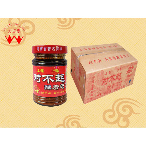 焦作市為您康調味品有限公司生產的多種口味系列調味品---“為您康”牌香辣醬,是經過精心研制開發(fā)的深加工食品,口味獨特、營養(yǎng)保健,定名“為您康”.投放市場以來,深受廣大消費者喜愛,現已銷往全國近20個省市,可稱辣椒醬企業(yè)旗艦,在全省調味品市場已占領一定的份額。