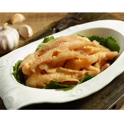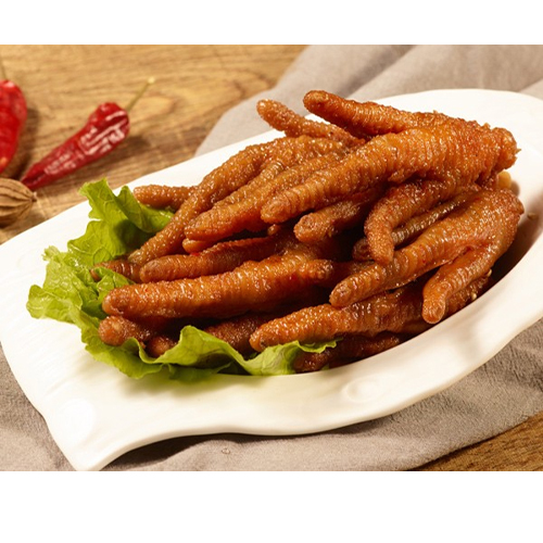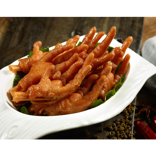 特色蒜香脫骨鳳爪精選色澤潔白形狀均勻的鳳爪,經過水煮、手工去骨,秘制醬料腌制等,制作工序復雜