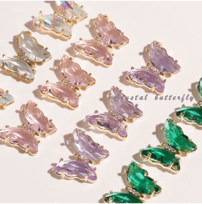 冰透旋轉(zhuǎn)水晶蝴蝶美甲 代加工貼牌OEM/ODM