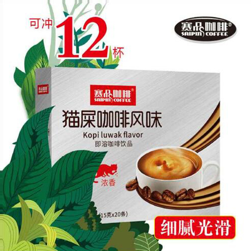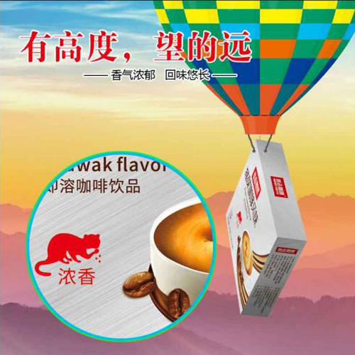 但是漿果內的咖啡粒無法嚼碎,這樣,整個的咖啡豆粒就在貓的腸胃里經過了一夜的消化,其中咖啡豆里的蛋白質等都進行了局部分解。咖啡豆隨著貓的糞便排出體外。咖啡農及時收集了這些貓屎咖啡豆,經過清洗,滅菌等工藝,人們發現,這樣的豆子驚人的香醇,味道別致。我們的貓屎咖啡風味的速溶咖啡飲料就是沿著這樣的風味,開發出來的,香醇無比。