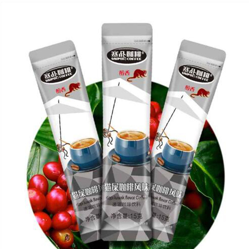 貓屎咖啡源于印度尼西亞的蘇門答臘島,當地有一種麝香貓,特別喜歡偷食熟透了的紅色咖啡漿果,果肉香甜。但是漿果內的咖啡粒無法嚼碎,這樣,整個的咖啡豆粒就在貓的腸胃里經過了一夜的消化,其中咖啡豆里的蛋白質等都進行了局部分解。咖啡豆隨著貓的糞便排出體外。咖啡農及時收集了這些貓屎咖啡豆,經過清洗,滅菌等工藝,人們發現,這樣的豆子驚人的香醇,味道別致。我們的貓屎咖啡風味的速溶咖啡飲料就是沿著這樣的風味,開發出來的,香醇無比。