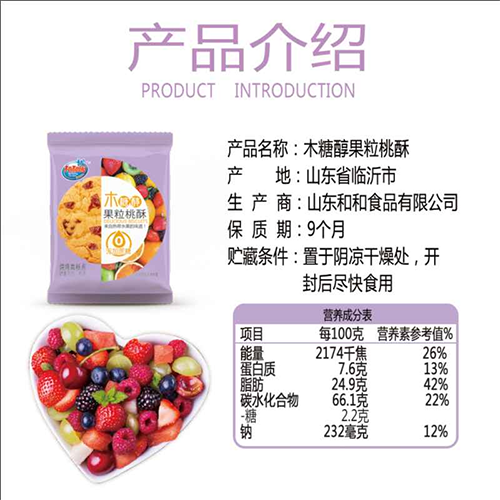 木糖醇果粒桃酥,撒上果粒,淡淡清香,來自熱帶水果的味道!