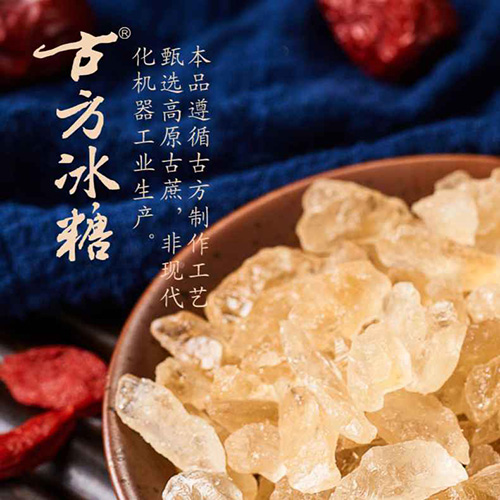 冰糖味甘、性平,入肺、脾經;有補中益氣,和胃潤肺的功效;冰糖養陰生津,潤肺止咳,對肺燥咳嗽、干咳無痰、咯痰帶血都有很好的輔助治療作用;用于肺燥、肺虛、風寒勞累所致的咳喘、小兒瘧疾、噤口痢、口瘡、風火牙痛