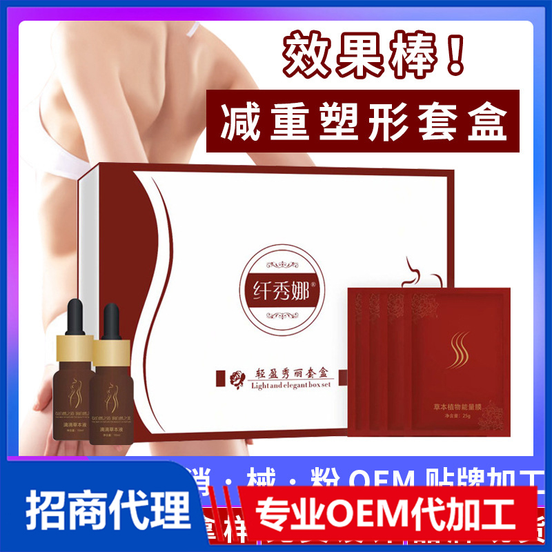美容院減重堿肥產(chǎn)品外用塑形緊致藥粉懶人大肚子貼仟體霜套盒OEM/ODM定制代加工