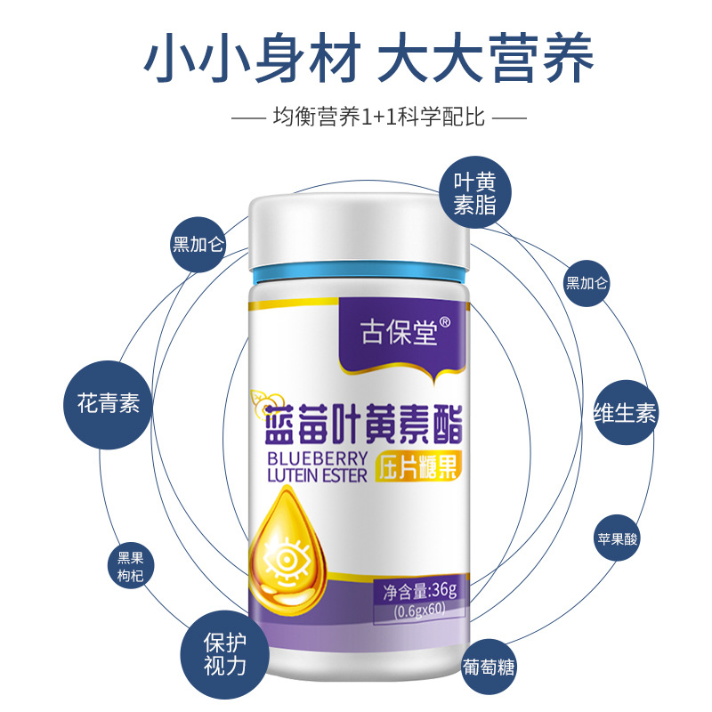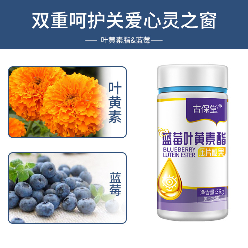 古保堂藍莓葉黃素酯咀嚼片瓶裝OEM藍莓保護視力壓片糖果代工廠