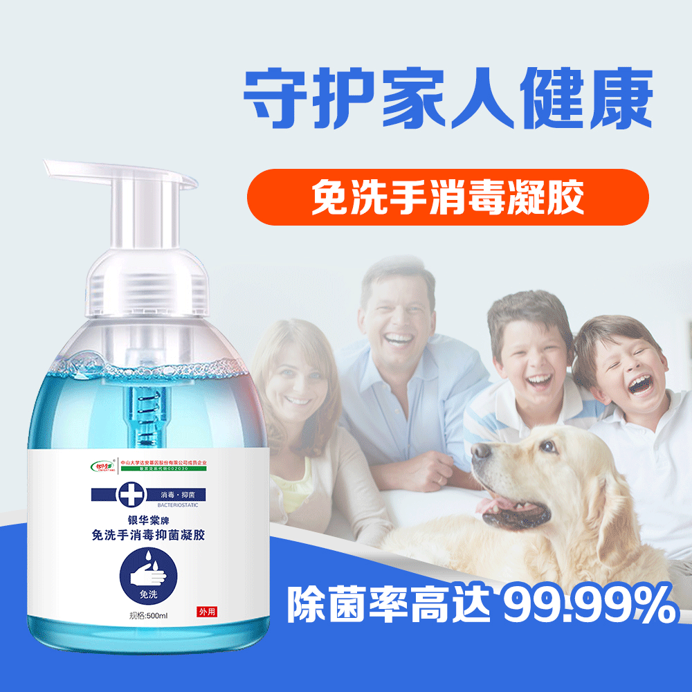 銀華棠免洗手消毒清潔抑菌酒精凝膠500ml貼牌定制 洗手液免費打樣