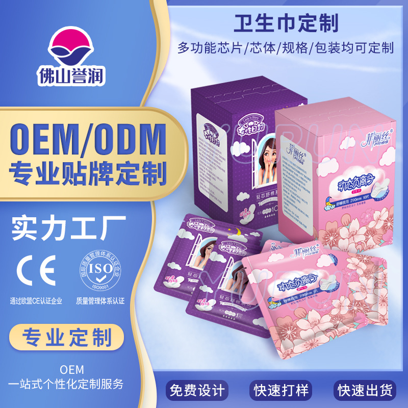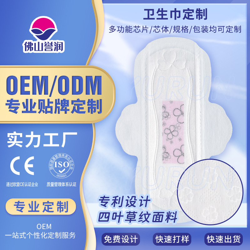 負離子衛生巾OEM/ODM 平紋純棉親膚瞬吸透氣貼牌衛生巾免費打樣