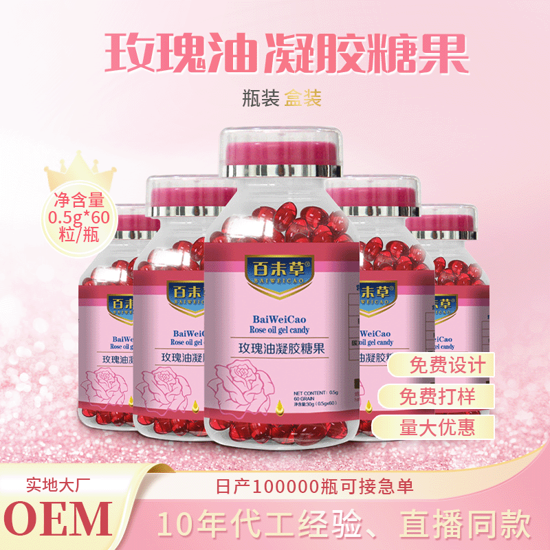 百未草紅玫瑰油軟膠囊凝膠糖果源頭工廠 60粒/瓶口服臉部涂抹生產基地