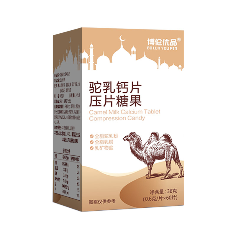 博倫優(yōu)品駝乳鈣片壓片糖果OEM/ODM男女營養(yǎng)補鈣好吸收即食咀嚼片60片一站式貼牌代加工