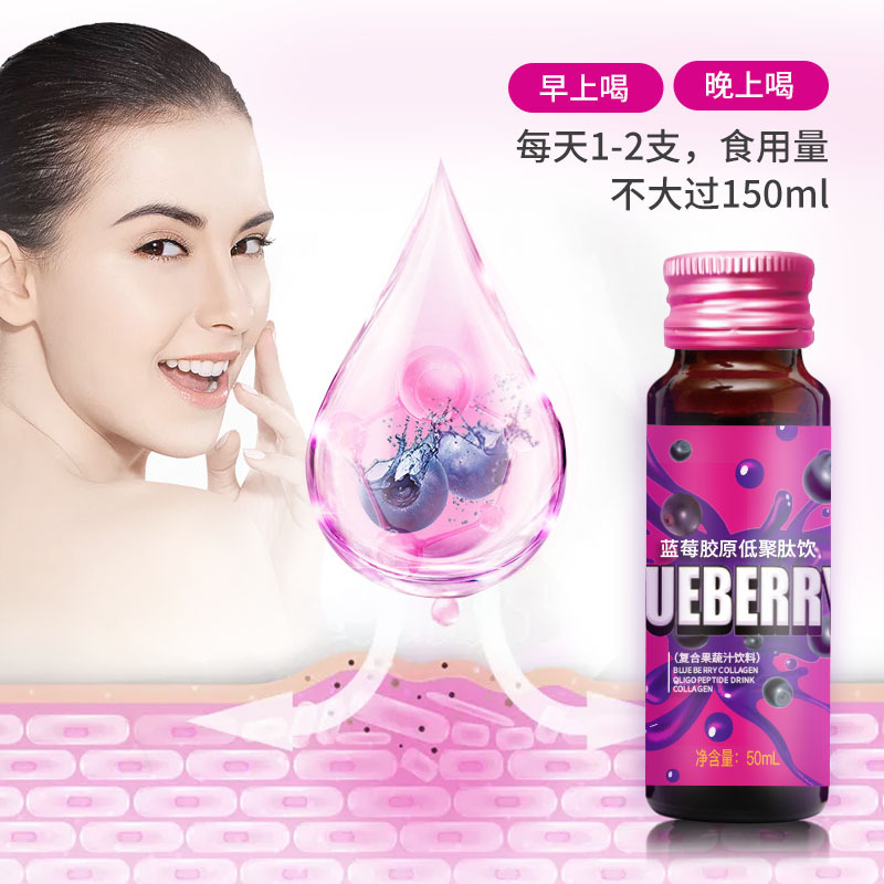 藍莓膠原蛋白口服液OEM/ODM深海魚藍莓小分子低聚肽飲品一站式貼牌代加工