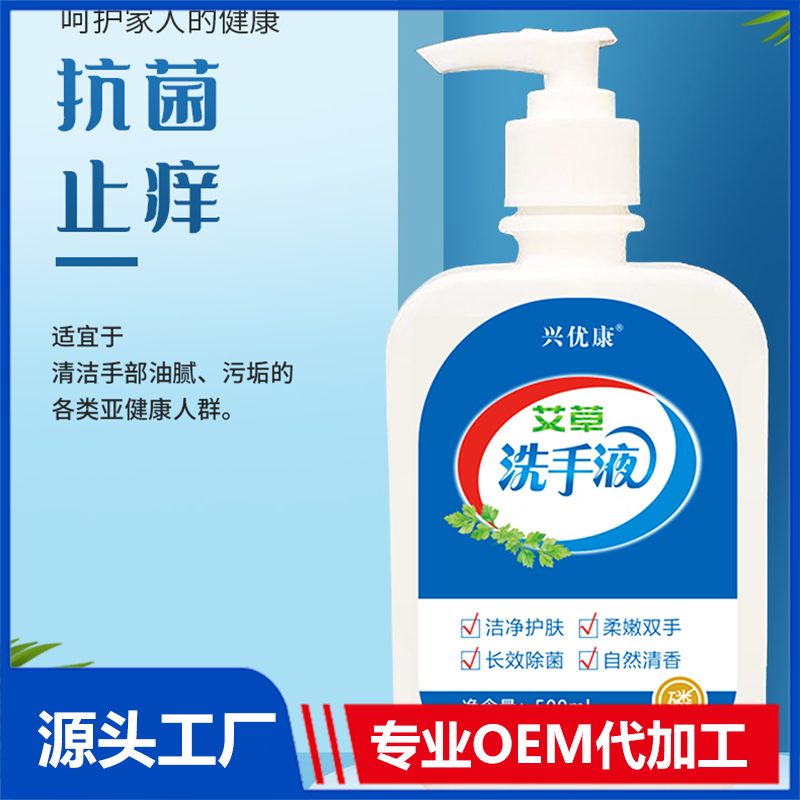 興優康洗手液艾草抑菌洗手液清潔滋潤家庭裝廠家批發