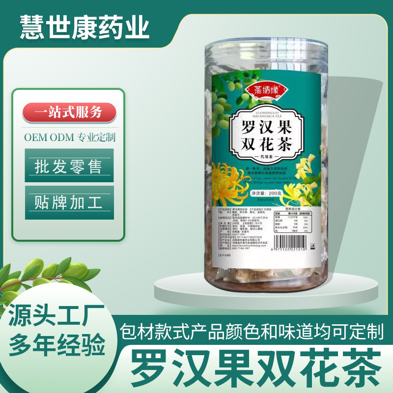 羅漢果雙花茶盒裝菊花金銀花組合花茶獨(dú)立包裝200克代加工