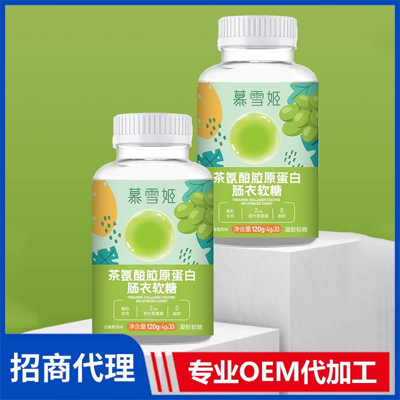 慕雪姬茶氨酸膠原蛋白腸衣軟糖代理批發 微量元素糖果oem貼牌代加工