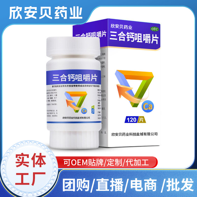 三合鈣咀嚼片廠家批發采購 咀嚼片鈣片壓片糖果OEM/ODM