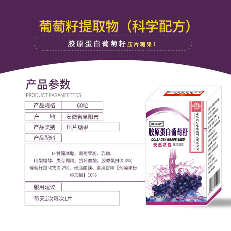 膠原蛋白葡萄籽壓片糖果OEM代加工 壓片糖果南京同仁堂源頭廠家批發