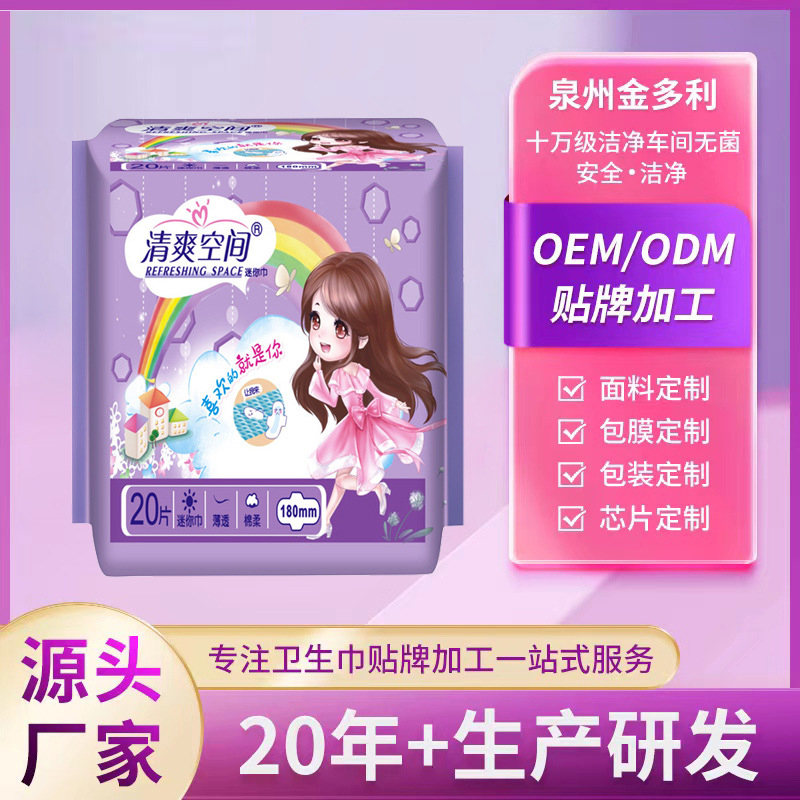 衛生巾工廠批發清爽空間20片棉柔親膚迷你巾 女性私護用品批發代
