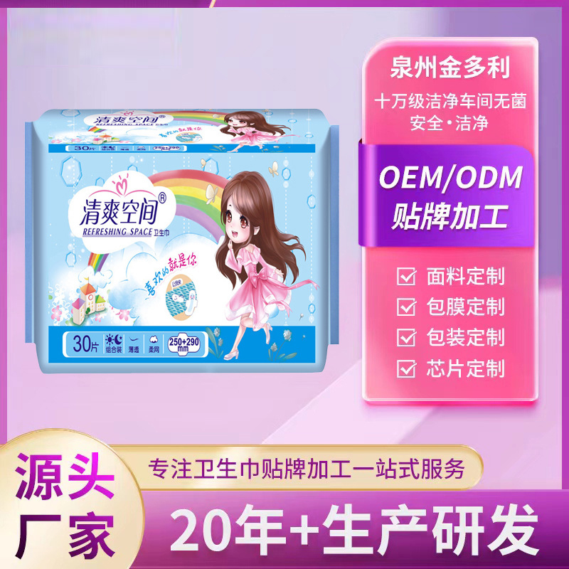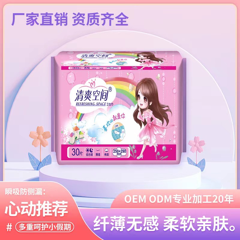 清爽空間30片日夜組合棉柔衛生棉 透氣干爽姨媽巾廠家批發代理