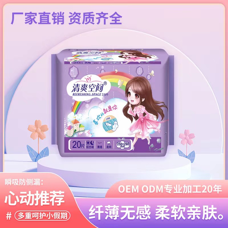 工廠直批清爽空間日夜組合20片棉柔衛生巾 廠家貨源整箱批發代理