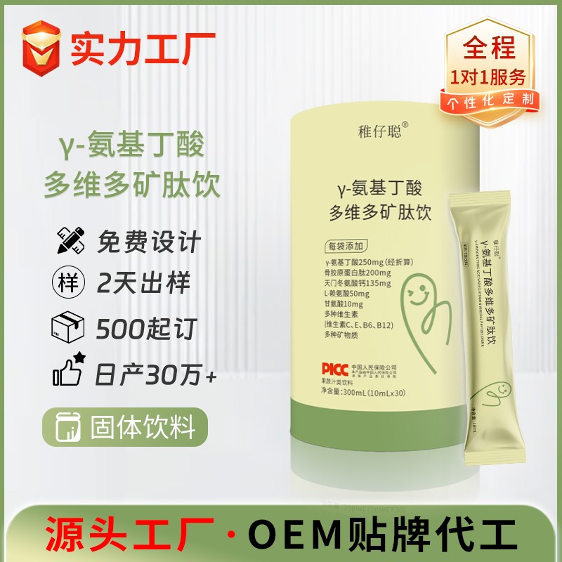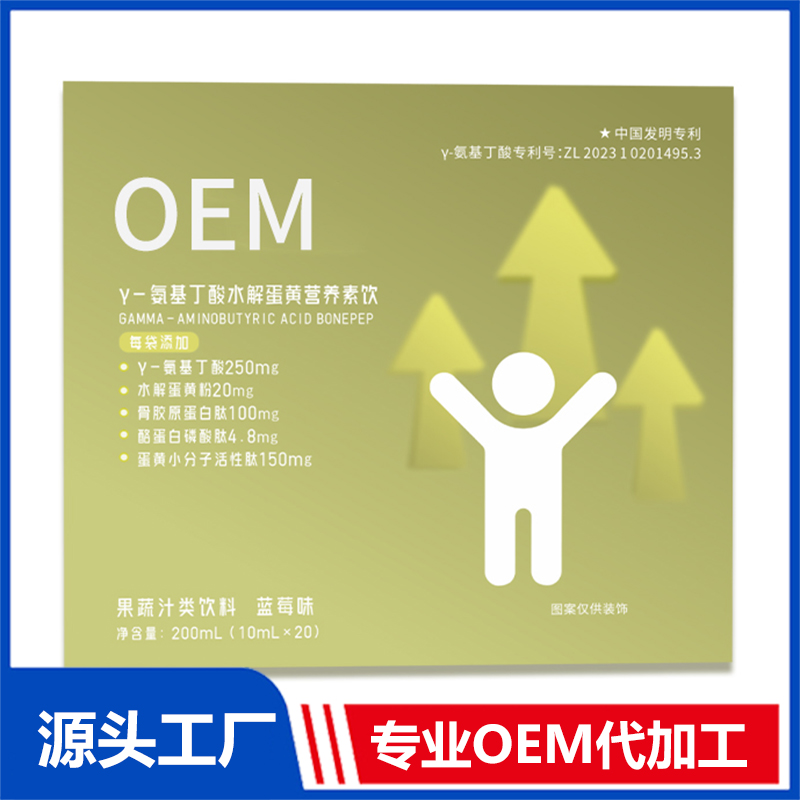 1年 口服飲品熱度榜 第12名 代工品類:γ-氨基丁酸 初乳堿性蛋白 低聚果糖漿 膠原肽 藍莓葉黃素酯 牛脾肽 引力素節節高飲品