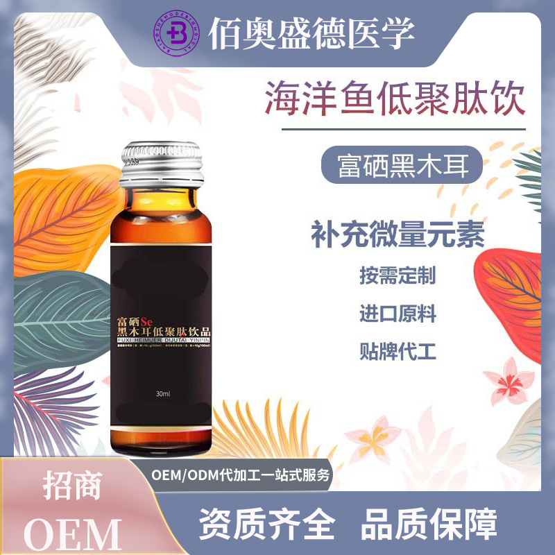 富硒黑木耳海洋魚低聚肽飲OEM富硒液態飲中老年富硒口服液代加工