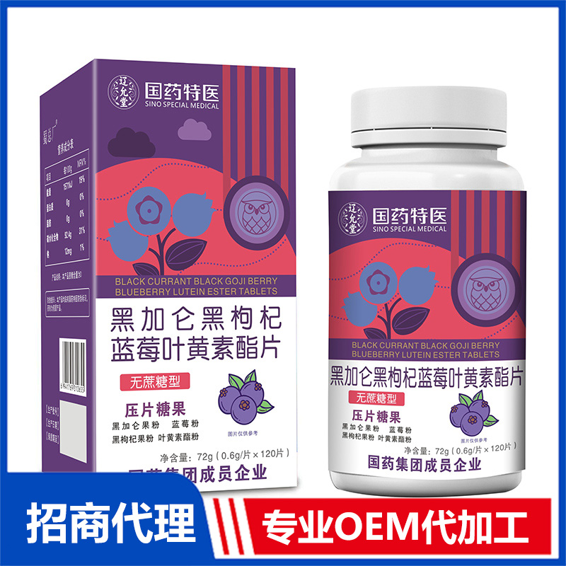 國藥特醫黑加侖黑枸杞藍莓葉黃素酯片OEM代加工 壓片糖果片劑貼牌定制源頭廠家
