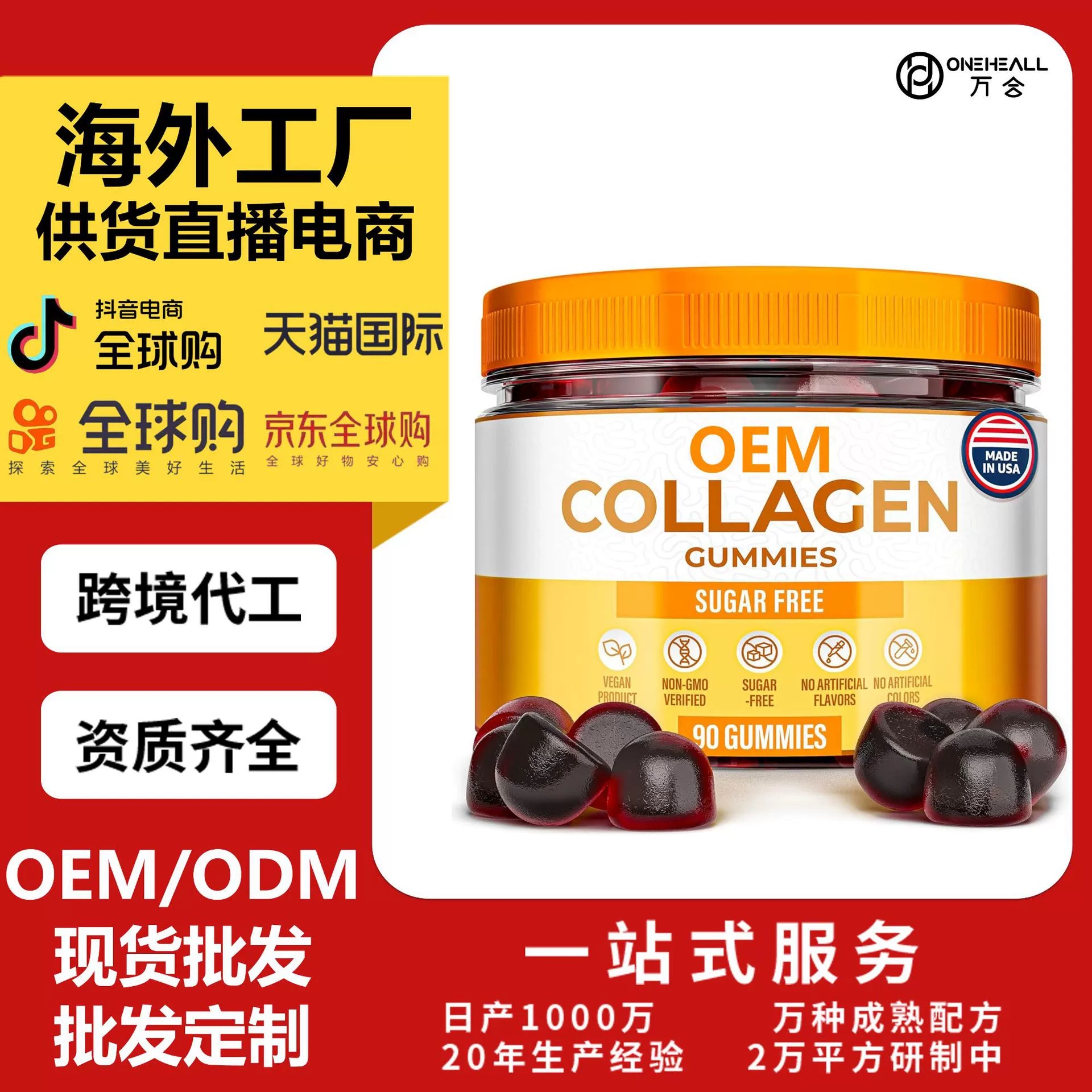 跨境TKAmazon熱銷膠原蛋白肽粉安徽片劑粉劑膠囊飲液軟糖OEM/ODM