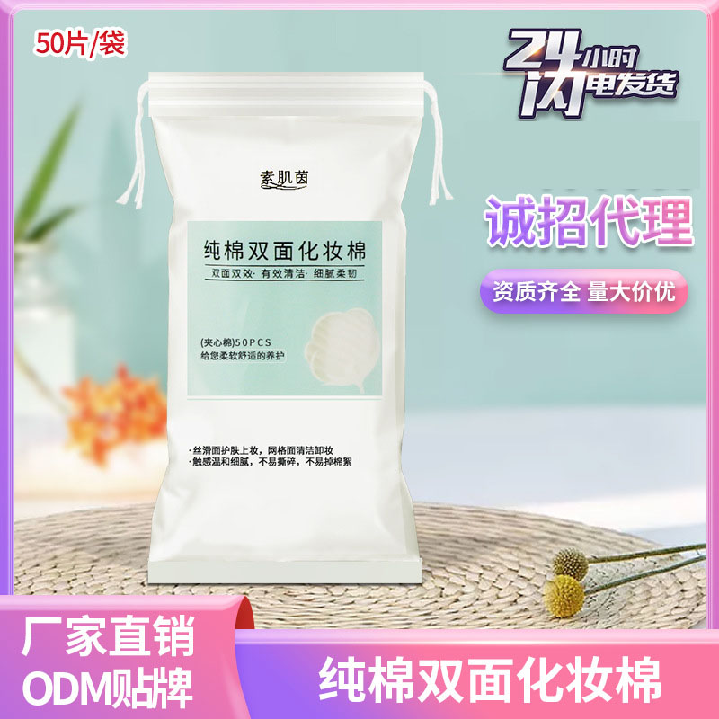 厚款棉質雙面化妝棉 柔軟卸妝巾 一次性卸妝棉50片袋裝OEM/ODM定制代加工