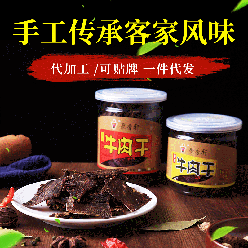 龍巖罐裝手工牛肉干 風干手撕五香麻辣牛肉干批發休閑零食貼牌定制代加工