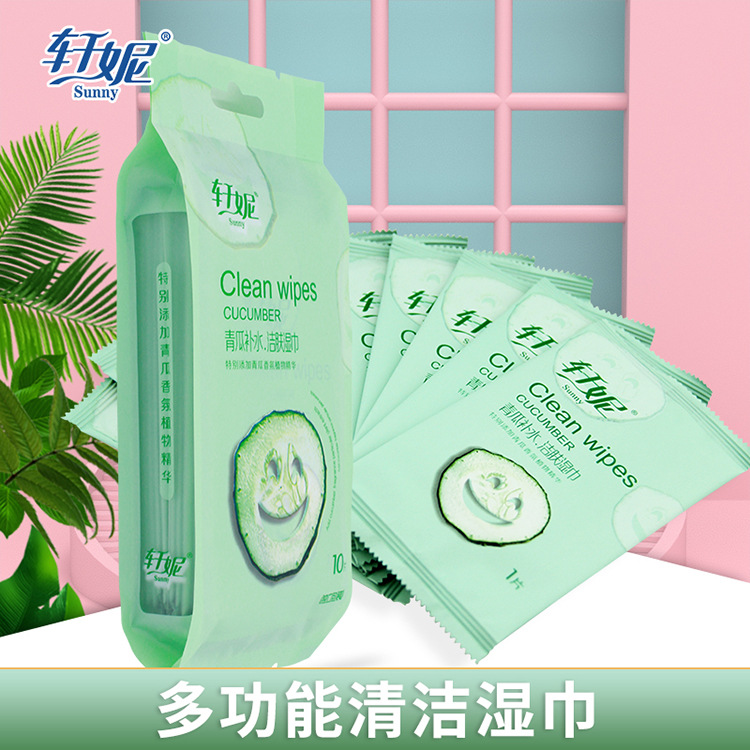 軒妮青瓜補(bǔ)水潔膚濕巾10片裝代加工貼牌OEM/ODM