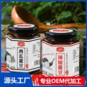 專業承接辣椒醬豆包裝OEM代加工代加工,辣椒醬豆包裝OEM代加工生產廠家源頭工廠,提供oem貼牌代加工辣椒醬豆包裝OEM代加工價格行情...,商丘市大釀坊調味品廠可按照客戶要求為客戶免費設計產品配方并進行打樣。可以幫客戶代為采購包裝材料。成品上市后,可為客戶提供產品銷售的建議及方案!