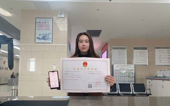 “我今天領取的是食品生產許可證,我在申領紙質證照的同時領取了電子證照。我感覺電子證照比較方便,只需攜帶手機即可,并且電子許可證方便查