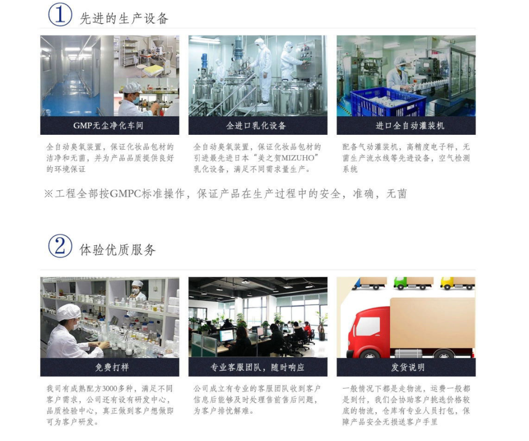 廣州綠妝化妝品有限公司是免洗面膜、潔面乳、防護霜、精油等產品,專業為國內外護膚品牌及淘寶、微商、院線等線上線下客戶打造爆款及流通品類護膚品、國妝產品的貼牌、研發、生產、備案等,我廠積累豐富成熟的配方,滿足客戶的各類產品特性、功效等質量要求,專業生產加工的公司,擁有完整、科學的質量管理體系。廣州綠妝化妝品有限公司的誠信、實力和產品質量獲得業界的認可。歡迎各界朋友蒞臨參觀、指導和業務洽談。