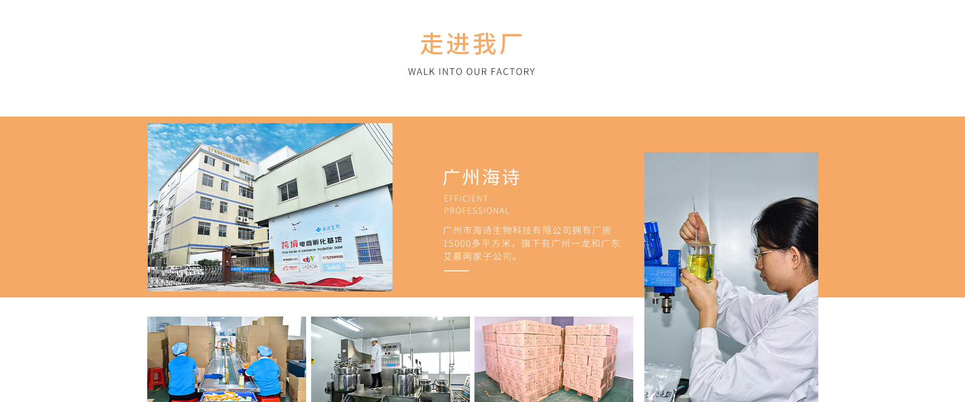 廣州市海詩生物科技有限公司擁有廠房15000多平方米,旗下有廣州一龍和廣東艾慕兩家子公司。配備10萬級無塵凈化車間,現已通過ISO22716及GMPC國際標準認證,按照藥廠的硬件和軟件要求配置,并應用自動化的生產設備,二級反滲透水處理,實現機械化生產操作,保證產品生產的高效率,高品質。標準化的工廠管理流程,嚴格按照化妝品的生產法規和標準運營,確保質量的穩定。 公司擁有自己的分析測試中心,同時實驗室配置了氣相色譜儀,液相色譜儀,紅外光譜儀,薄層色譜像儀、熔點儀等專業檢測設備,不僅可以做化妝品的常規理化測試,微生物測試,還可以獨立完成化妝品的成分功效等專業測試,確保產品處于受控狀態。