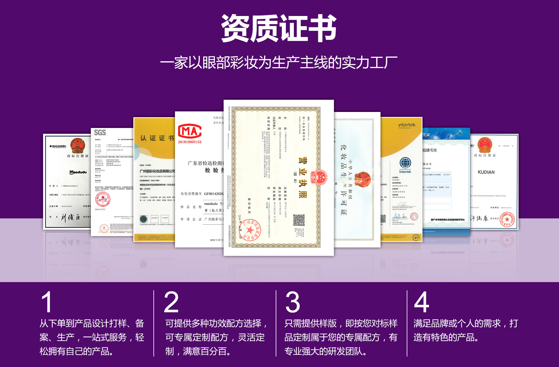 廣州酷彩化妝品有限公司(簡稱“酷彩”),位于廣州市白云區人和鎮,注冊資金1000萬。酷彩主攻睫毛膏等眼部產品研發與生產,專注睫毛膏及眼部彩妝產品17年,因為專注,所以專業!目前旗下有員工100-150人,睫毛膏日常量高達20萬支。公司一貫堅持“品質為本,服務為根,信守合同,合作無憂”的宗旨,多年如一日的服務客戶,客戶覆蓋全國三十余省市,產品進出口東南亞、中東等國家與海外地區,竭誠與國內外商家雙贏合作,一同發展,共創輝煌!