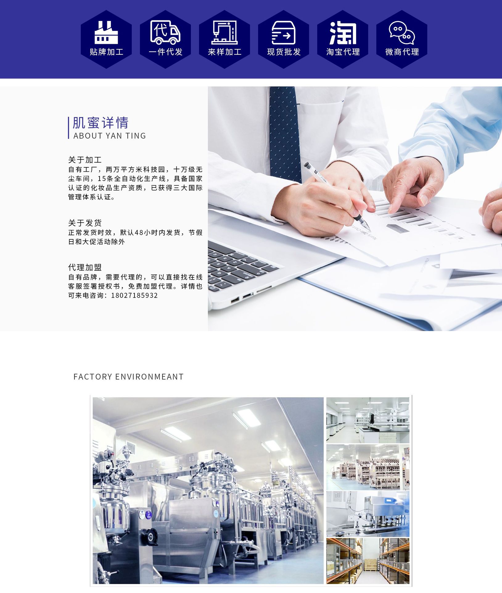 廣州肌蜜化妝品有限公司是化妝品、化妝品等產(chǎn)品專業(yè)生產(chǎn)加工的公司,擁有完整、科學(xué)的質(zhì)量管理體系。廣州市顏婷化妝品有限公司的誠信、實(shí)力和產(chǎn)品質(zhì)量獲得業(yè)界的認(rèn)可。歡迎各界朋友蒞臨參觀、指導(dǎo)和業(yè)務(wù)洽談。
