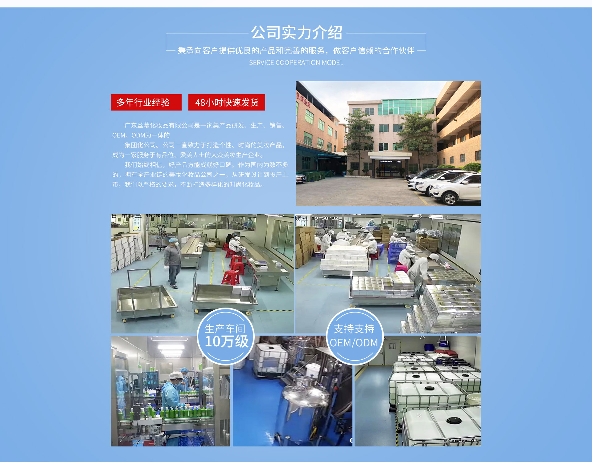 廣東歐泊美化妝品有限公司OEM/ODM一站式服務企業 廣東歐泊美化妝品有限公司是研發為核心,集策劃、生產、銷售為一體的綜 合性高科技化妝品OEM公司,為眾多知名品牌提供化妝品加工服務。 厚積薄發,成就雄厚實力 廣東歐泊美化妝品有限公司生產基地有12000余平方米,工廠先后通過國際化標準GMPC認 證和ISO9001質量管理體系認證,擁有先進的生產設備和國內一流的生產環境,生產車間全 部采用十萬級空氣凈化消毒系統,創造良好的生產環境。 品質卓越,深受客戶好評 有美·廣州承純天然功效配方及精良的制作工藝,致力于為眾品牌商、美 容連鎖機構、網絡營銷機構、美容儀器開發商提供高效、新穎、獨特、尖端的綠色環保系產 品;涉及護膚、養膚、養生、美容、保健等領域;隨時掌握市場信息,將最新科技成果應用 到產品開發中。獨立開發、更新特色化妝品,為廣大客戶提供功效卓越,源自天然,品質過 硬的各種美容護膚產品。