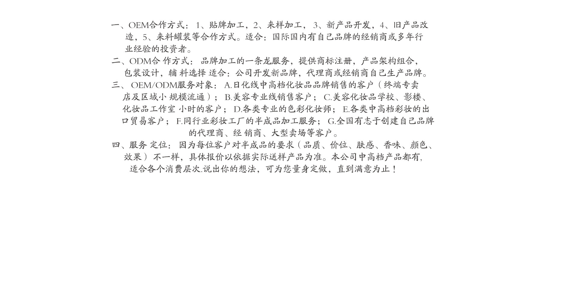 廣州絲塔芙化妝有限公司,廣州絲塔芙化妝品有限公司專業(yè)從事化妝品研發(fā),策劃,生產(chǎn)為一體的集團(tuán)化化妝品企業(yè),專注于各種類(lèi)型彩妝護(hù)膚品,以及中高檔化妝品品牌半成品的OEM/ODM加工及品牌區(qū)域代理,批發(fā),銷(xiāo)售,生產(chǎn)廠房1.2萬(wàn)平方米,并且通過(guò)了歐盟GMP生產(chǎn)質(zhì)量認(rèn)證,完善的質(zhì)量管理和嚴(yán)格的檢測(cè)系統(tǒng),確保最終產(chǎn)品的質(zhì)量,嚴(yán)把質(zhì)量關(guān),確保產(chǎn)品質(zhì)量。