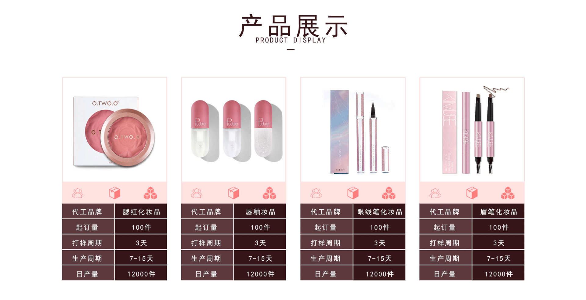 廣州辰希化妝品有限公司主營彩妝、護膚品、外貿定制等。公司秉承“顧客至上,銳意進取”的經營理念,堅持“客戶第一”的原則為廣大客戶提供優質的服務。歡迎惠顧!