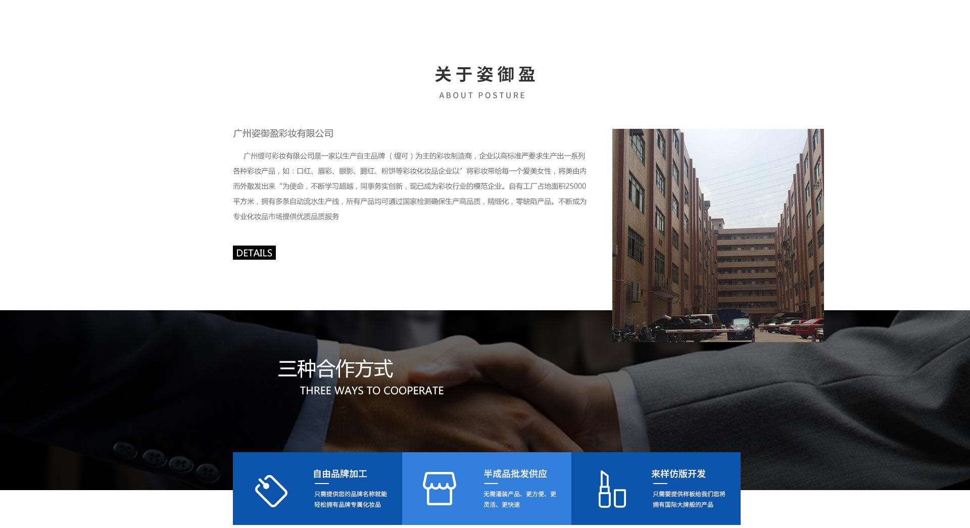 廣州姿御盈化妝品有限公司是彩妝OEM、彩妝ODM、彩妝成品、化妝工具成品等產(chǎn)品專業(yè)生產(chǎn)加工的公司,擁有完整、科學(xué)的質(zhì)量管理體系。