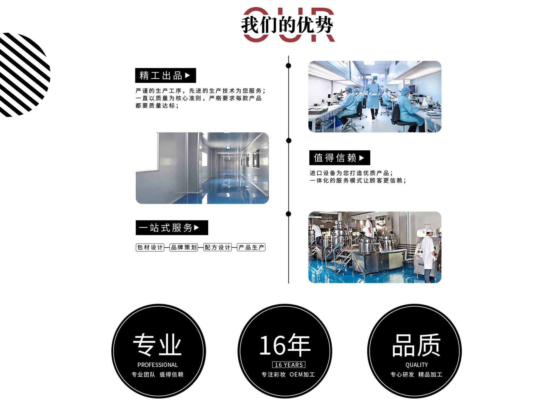 廣州太美化妝品有限公司旗下品牌太美筆業(yè),是一家生產(chǎn)化妝品彩妝系列的OEM/ODM代工企業(yè),公司集生產(chǎn)、研發(fā)、策劃、銷售于一體,主要生產(chǎn)眉筆、眼線筆、拉線筆、眼線液筆、唇線筆、口紅筆等產(chǎn)品。公司目前占地面積4000平方米,公司生產(chǎn)車間是裝修10萬級的無菌生產(chǎn)車間,引進德國先進的3.0自動化設(shè)備,擁有先進的生產(chǎn)設(shè)備,進口原料,車間按照國家標準無菌、無塵、藥品級規(guī)劃,實施8S國標準化管理,憑著“追求卓越、科技創(chuàng)新、腳踏實地”的理念力爭與世界產(chǎn)品品質(zhì)同步,引領(lǐng)筆業(yè)潮流,誓做筆業(yè)第一。