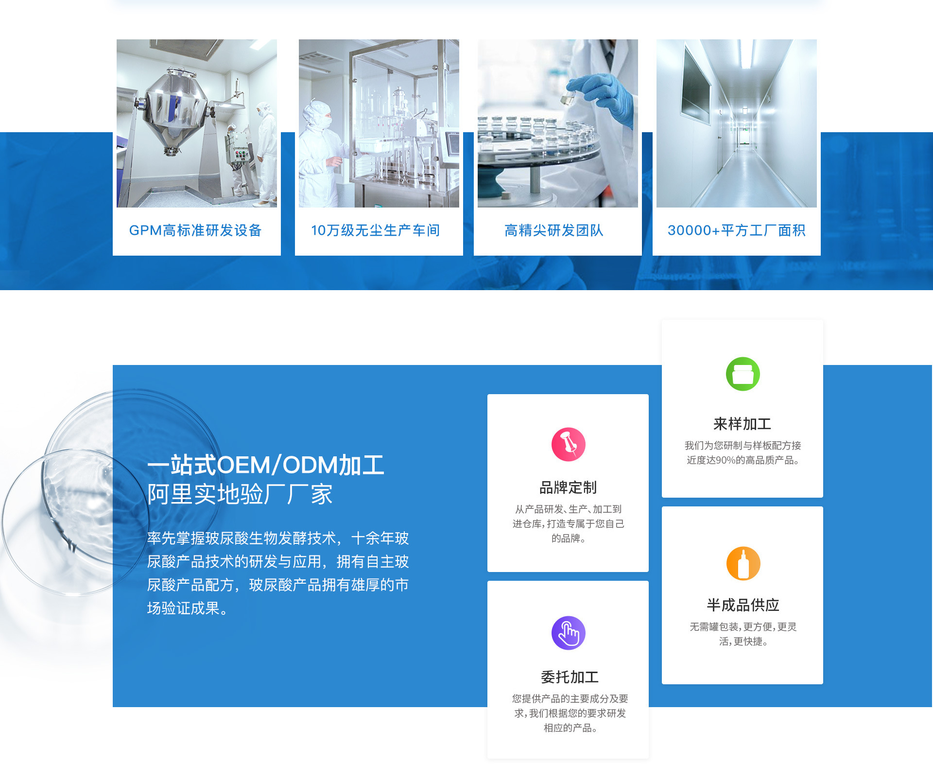 公司創(chuàng)建于2000年5月,2006年8月經(jīng)國家外貿(mào)局批準(zhǔn),成為具有獨(dú)立進(jìn)出口權(quán)的廠家。2009年至2011年投資興建了化妝品車間,于同年7月取得山東省食品藥品監(jiān)督管理局頒發(fā)的衛(wèi)生許可證:(2011)衛(wèi)妝準(zhǔn)字12-XK-008號(hào)。2011年10月取得中華人民共和國國家質(zhì)量監(jiān)督檢驗(yàn)檢疫總局頒發(fā)的全國工業(yè)產(chǎn)品生產(chǎn)許可證:XK16-108 9428。發(fā)展才是硬道理,公司于2012年8月份取得了三類醫(yī)療器械生產(chǎn)許可證書,并取得醫(yī)用透明質(zhì)酸鈉凝膠的出口資質(zhì)。公司擁有固定資產(chǎn)3887萬元,占地面積30000㎡,建筑面積7669㎡,(其中:有3個(gè)按GMP要求設(shè)計(jì)的600㎡ 的凈化車間),職工126人 (其中:工程技術(shù)人員29人,高級工程師8人),廠房符合GMP要求,自動(dòng)化發(fā)酵和純化設(shè)備、完美的質(zhì)量管理體系和現(xiàn)代化的檢測手段,生物發(fā)酵車間年生產(chǎn)透明質(zhì)酸鈉200噸,硫酸軟骨素100噸。