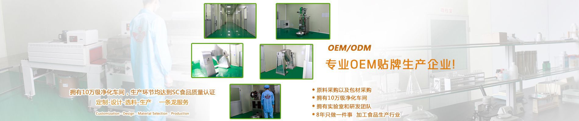 廣州美緣堂營養食品有限公司成立于2011年8月30日,是一家 集研究、開發、生產和銷售于一體的現代化高科技營養食品企業, 具有較強的科研開發能力和先進的技術實力。各生產車間達到10萬 級凈化標準,完全按照GMP認證要求進行生產,大大提高了產品的 安全度和穩定性。先進的生產設備:全自動包裝灌裝機,全自動安 瓶灌裝機,糖果自動包裝機,旋轉式壓片機等,擁有清洗、噴霧、 干燥、混合、封裝等工藝設備,可提供來料加工、OEM貼牌代加工 等服務,生產環節及流程鈞達到國家SC食品質量認證。