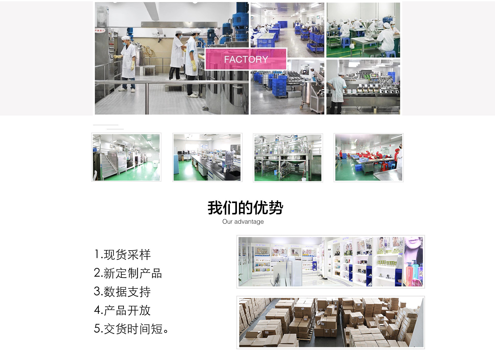 廣州歐瑞娜化妝品有限公司投資1千多萬元新建的現代化生產線,此生產線完全按照GMPC所需要的條件生產建設,生產面積占據3000多平方,采用多套膏霜乳化,植物草本,及中草藥萃取,自動灌裝,滅菌等國際先進設備,具備各類膏霜,洗護,美容化妝產品的生產條件和能力,生產范圍涉及,成人植物生發護膚類,植物養發類,成人日化類,嬰幼兒日化護膚類四大類別,新建的生產線不僅能生產各種規格形態品種的化妝品,還能實現化妝品所有常規項目的檢測,保證消費者安全使用產品,無塵車間按照高級凈化標準構建,工廠先后通過國際化標準,GMPC認證和ISO 9001質量管理PC認證,為保證衛生清潔,引進德國滅菌裝置,使所有進入廠區的工作人員實施嚴格的去菌,確保車間的衛生要求,分別引進國內外先進的乳化設備,50L,100L,150L,300L,500L,1000L等多規格自動氣量真空乳化鍋,行業領先的乳化設備,使制作的乳液和膏霜的分散性和穩定性都極佳,同時滿足不同訂單量的業務生產,工廠有多條智能化的流水生產線,多套全自動灌裝設備,超高精度電子天平,以及高精噴碼機,全自動面膜灌裝封口機,為實現規劃化,標準化的生產模式,提供了有利的硬件基礎保障,運用德國紫外線設備應用,保證化妝品用水微生物零解出,確保化妝品的穩定性和安全性,采用國內最先進的數據化,全自動面膜生產線,可實現自動開袋,結袋及填充和封口等包裝工藝的全自動化生產,包裝速度快,適用性強,運行平穩,從生產到產品出庫共7個環境,每個環境都設有專人把控,以一絲不茍的敬業精神,層層把關,從而取得客戶的高度信賴和評價!
