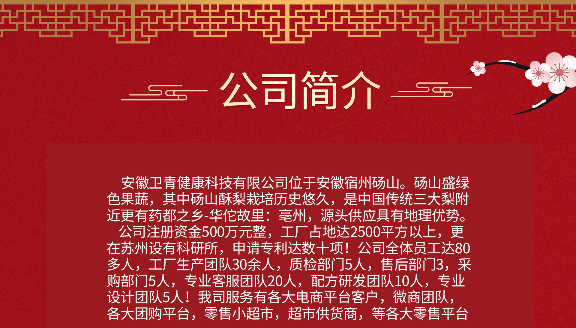 工廠位于安徽省宿州市碭山縣內(nèi),占地2000多平方米,注冊資金500萬元,總資產(chǎn)近1000萬元。公司擁有標(biāo)準(zhǔn)化的生產(chǎn)車間。是一家集養(yǎng)生保健茶、調(diào)味茶、固體飲料以及方便食品的研發(fā)、生產(chǎn)和銷售為一體的現(xiàn)代化高科技企業(yè)。