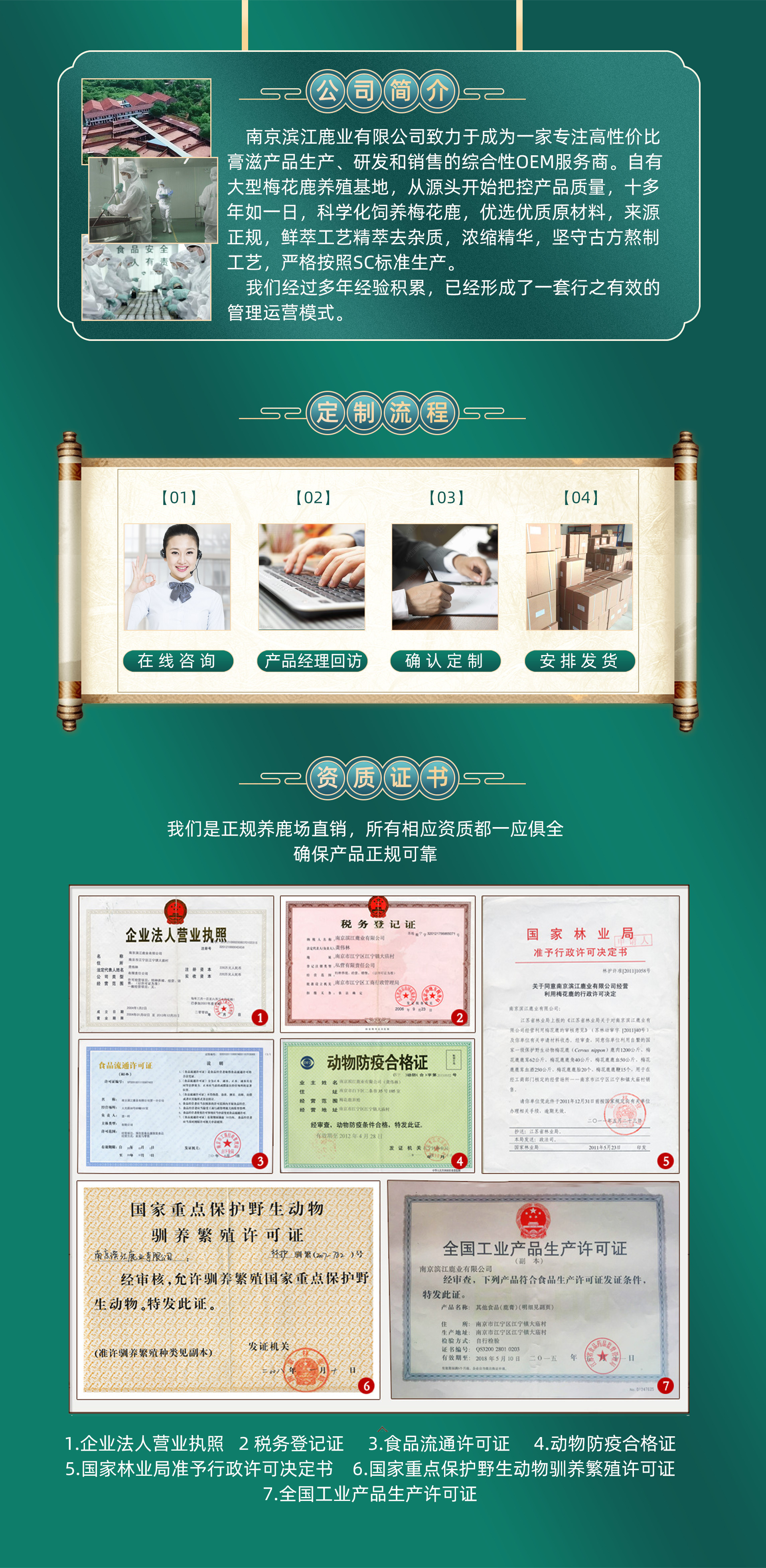一瓶好膏,鹿為本 至真至臻,專注專業,宜露背后是濱江鹿業人堅守的初心。 養殖基地始建于1999,宜露濱江鹿業,一直以敬畏之心專研于鹿滋補領域。我們堅持科學養殖,并建鹿業合作社,采用專業的養殖團隊為鹿群篩選草飼食糧配方,只為保證鹿原料醇真。中醫藥大學專家研發團隊配方,真實藥食同源中藥熬制,72小時凝煉,鮮萃提純,每一滴都豐潤掛旗不透光乃膏中臻品。 因為同時具備養殖和生產雙重專業度,宜露品質為鹿滋補的行業樹立標桿,我們更早通過國家食藥局sc認證鹿制品,專注更專業。 堅守傳承御用古方,采用創新提純技術,讓皇室滋補走進千萬家。 從養殖到生產,宜露用心把控產品質量,只為讓更多人享用到正宗道地包含誠意的鹿珍品。